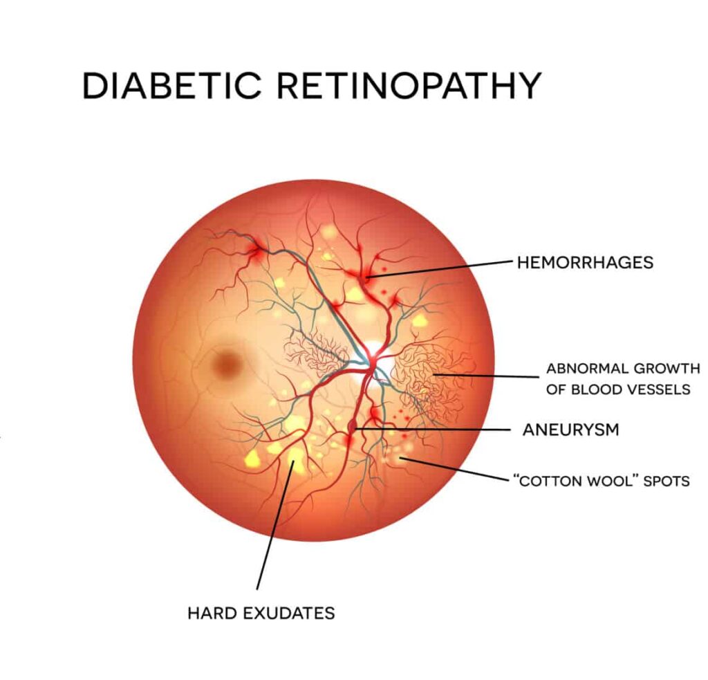 Diabetic retinopathy is an eye disease that affects the blood vessels of the retina. The longer you have had diabetes, the more likely you will develop diabetic retinopathy. There are two main stages of diabetic retinopathy: